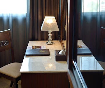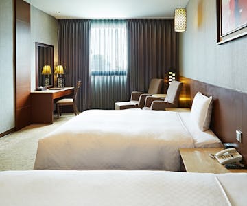 可調式中央空調、110v電源插座、電子保險箱、 液晶電視、負離子吹風機、免費有線/無線寬頻網路、TOTO乾濕分離衛浴設備、TOTO免治馬桶、電子卡片式門鎖、雨傘、盥洗備品、Oliva地中海橄欖保濕全效髮膚清潔露、潤髮乳、保溫壺、客房專屬Mini Bar。(2025/01/01起配合環保署政策,全面停止提供一次性備品及瓶裝礦泉水)